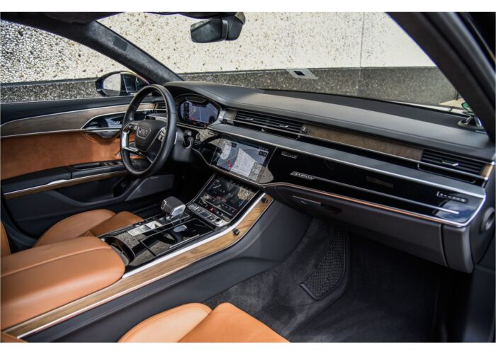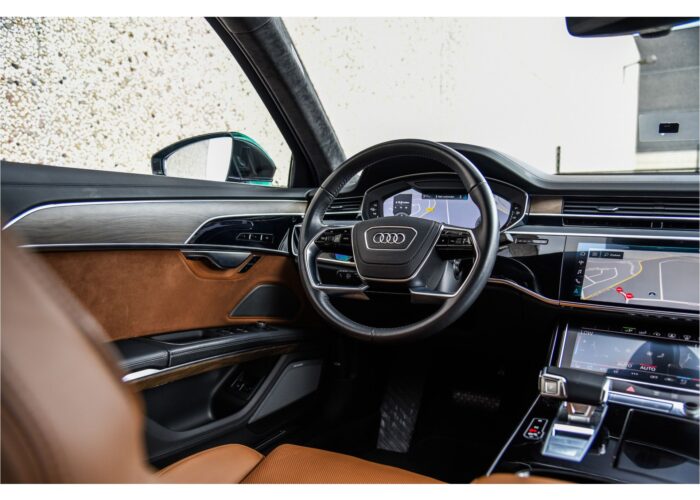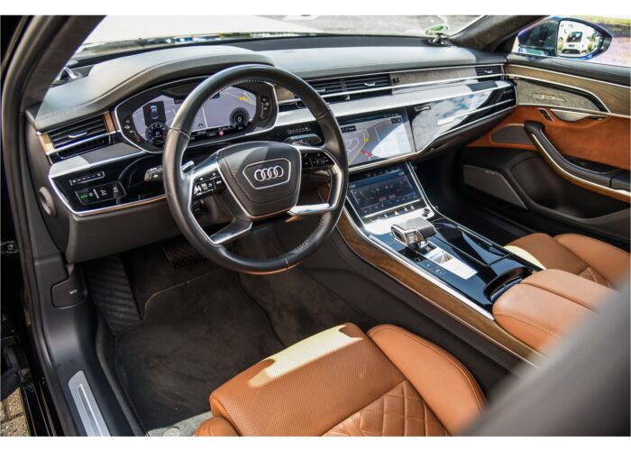 Deze Audi A8 staat te koop bij Garage Goudswaard in 's-Heerenberg. De auto is van Mar 2020 en heeft 65.450 km op de teller staan. Deze Audi A8 heeft 5 zitplaatsen en de 6 cilinder hybride motor levert 449 pk. De bekleding in deze auto is bruin leder.